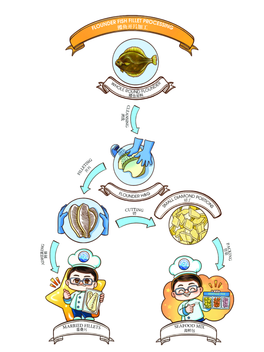 Flounder / Yellowfin Sole is a flatfish species prized for its white, tender flesh with a natural sweet flavor, highly regarded in international markets. It is widely used for fillet, HGT, and value-added seafood products due to its firm texture, low bone content, and easy preparation.